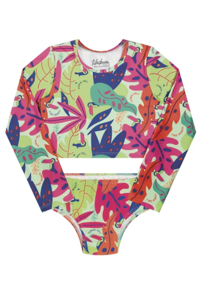 Lindo biquini cropped tchibum com manga longa em cotton com proteção UV 50+.