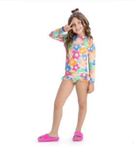 Descrição: Modelo em 2 peças - Lindo biquini com manga longa em cotton com proteção UV.