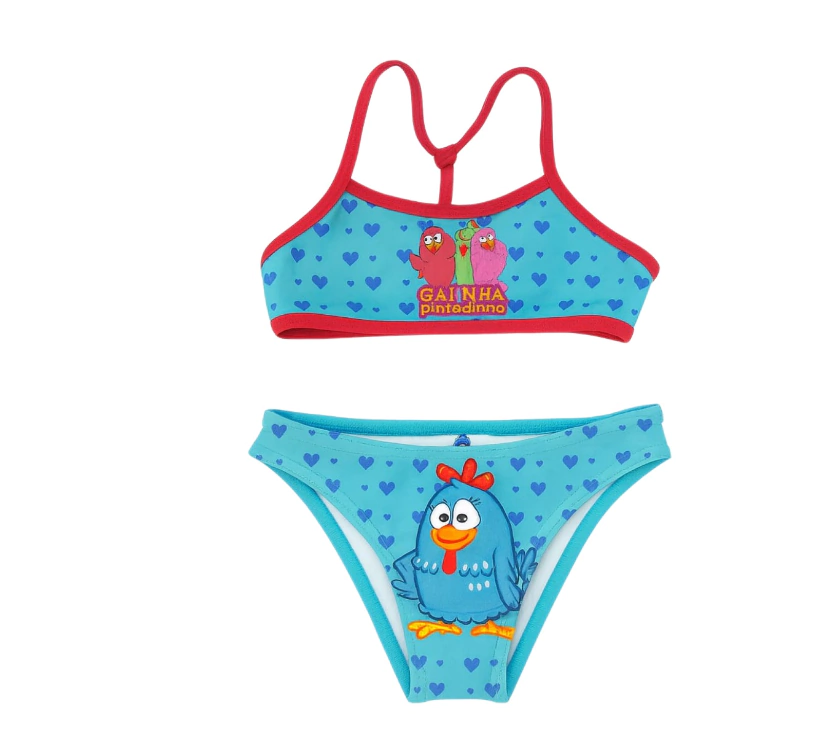 Descrição: Modelo em 2 peças- Lindo biquini em lycra da galinha pintadinha.