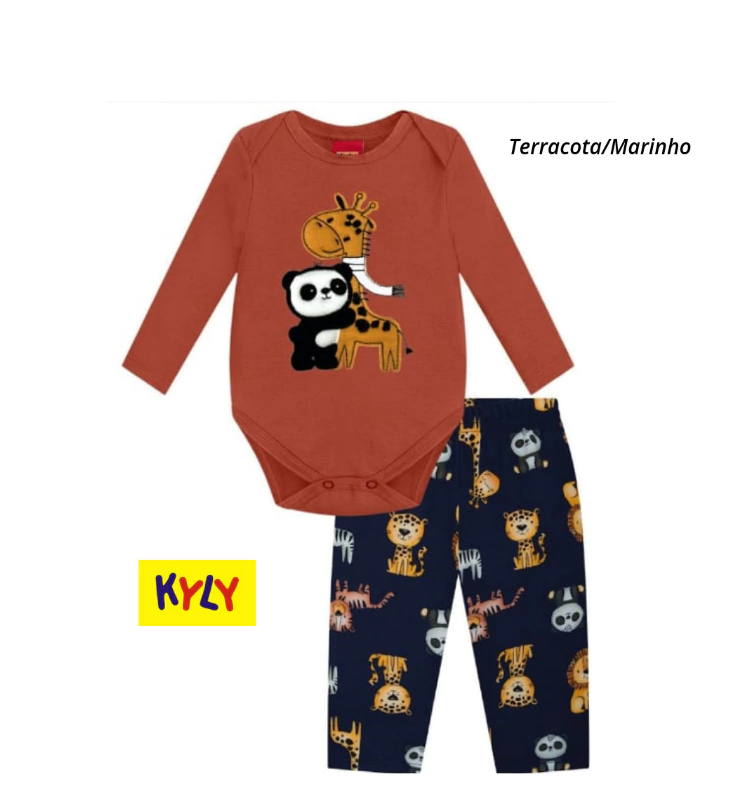 Descrição: modelo em 2 peças - Body manga longa em cotton com bordado e calça de moletom flanelada estampada.