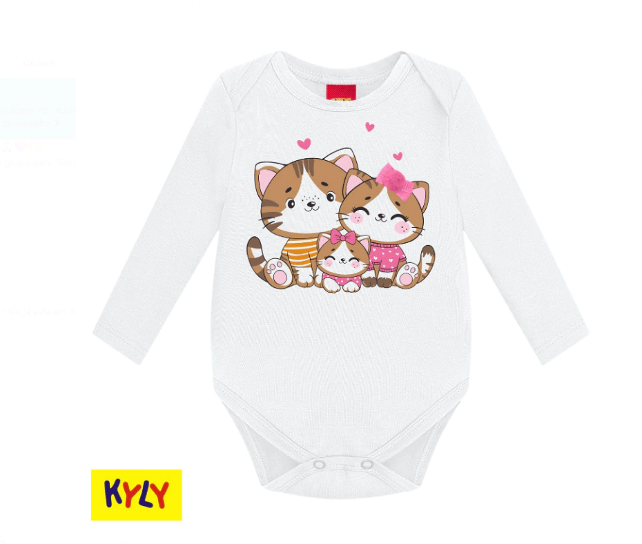 Body manga longa em cotton com estampa. Composição: 95% algodão 5% elastano .