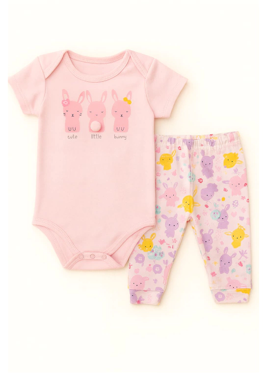 Descrição: modelo em 2 peças - Body manga curta e calça estampada em malha suedine.