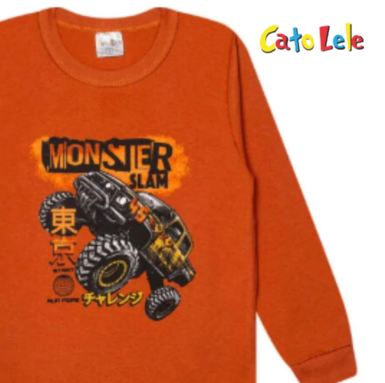 Descrição: Modelo em 1 peça- Camiseta manga longa em malha com estampa.