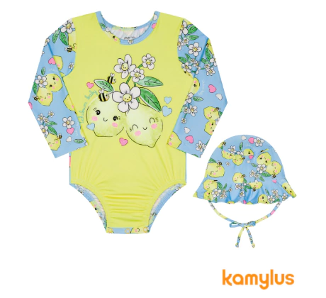 Conjunto encantador composto por maiô manga longa e chapéuzinho, ambos com estampa de flores, trazendo um visual cheio de estilo e diversão. , o chapéu adiciona charme extra ao look. Com proteção UV50+, HIGH CLO e DRY FIT, a peça oferece segurança contra os raios solares, resistência ao cloro e secagem rápida, garantindo conforto e proteção em todos os momentos de lazer à beira d’água.
