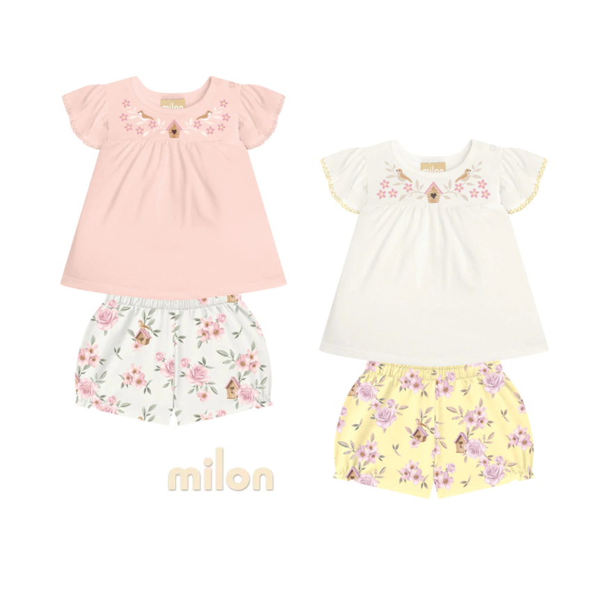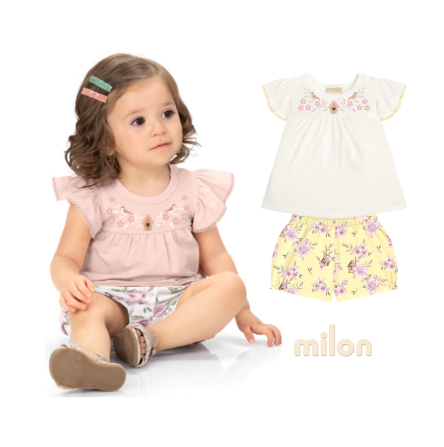 Descrição: modelo 2 peças - Linda blusa com abertura funcional no ombro garantem praticidade e short em cotton.