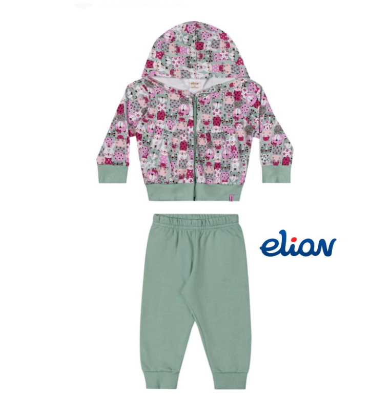 Descrição: Modelo em 2 peças - Linda blusa estampada com ziper e capuz e calça em moletom flanelado .