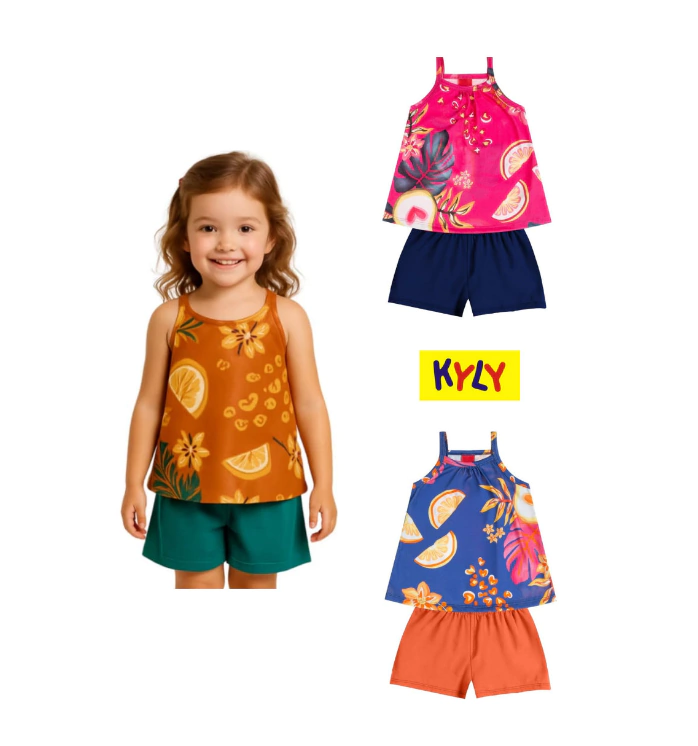 Descrição: Modelo em 2 peças - Linda blusa com alça estampada em meia malha short em malha .