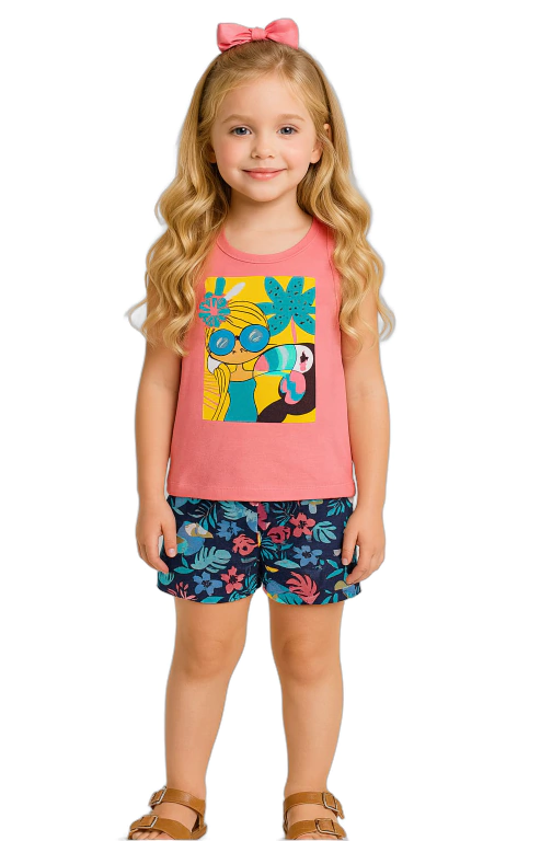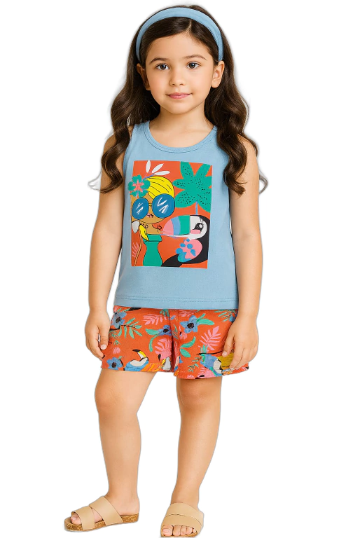 Descrição: Modelo em 2 peças - blusa regata e short em cotton, conjunto basico para o dia a dia.
