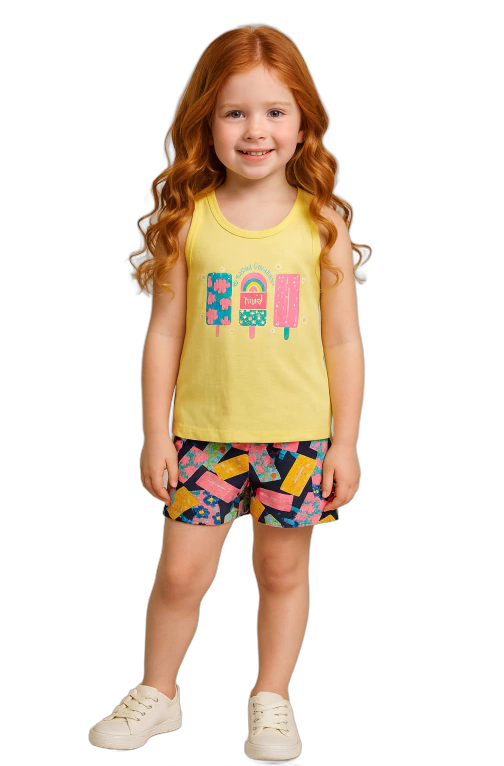 Descrição: Modelo em 2 peças - blusa regata e short em cotton, conjunto basico para o dia a dia.