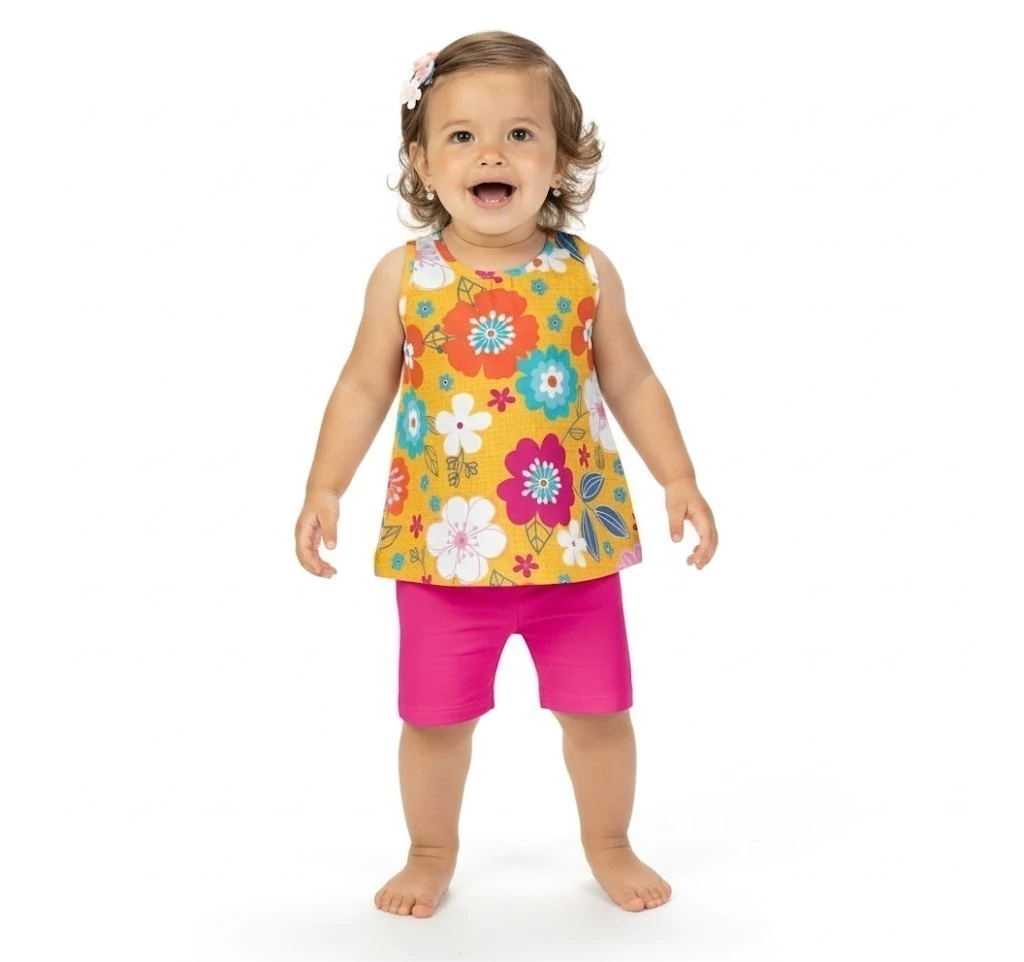 Composição: blusa (100% algodão) ciclista (95% algodão 5% elastano) .