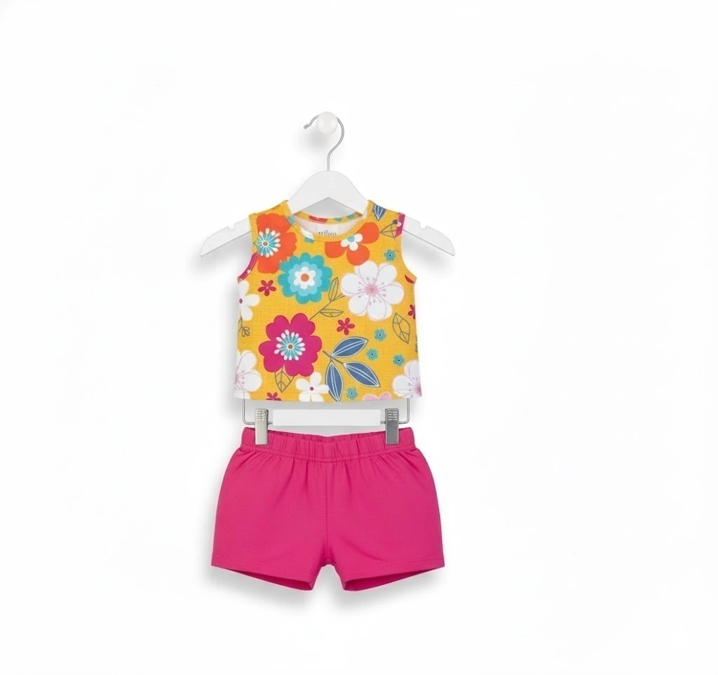 Descrição: Modelo em 2 peças - Linda blusa estampada em meia malha bermuda ciclista em cotton .