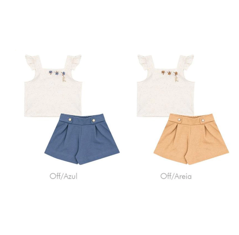 Descrição: modelo em 2 peças - Linda blusa tecido de alta qualidade com bordado e lindo short com prega e detalhe no cós.