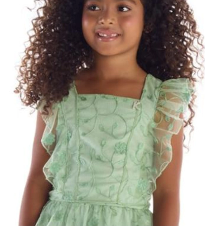 Descrição: modelo em 2 peças - Linda blusa e saia em tule bordado com brilho, saia com short interno.