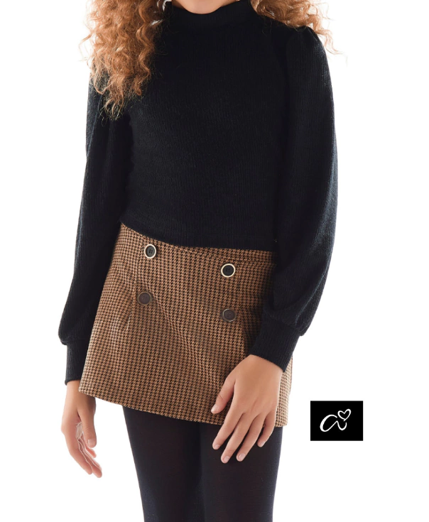 Descrição: modelo em 2 peças - Linda blusa manga longa em cotelê e short saia em xadrez.