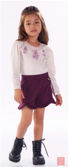 Linda blusa em malha com textura e bordado e short em malha tricot.