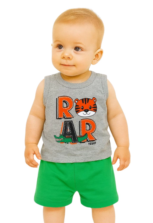 Composição: camiseta (52% algodão 48% poliester) bermuda( 100% algodão).