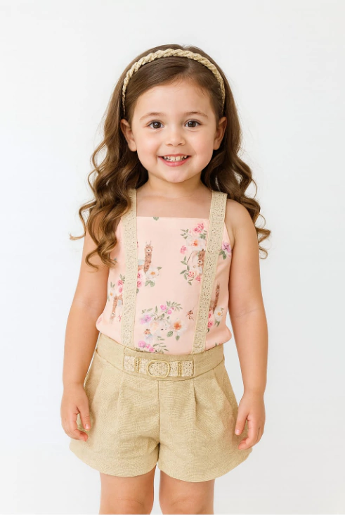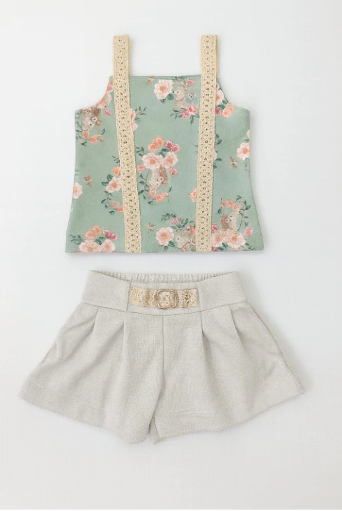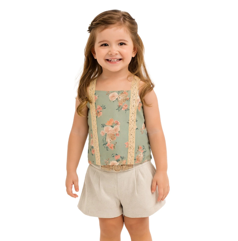 Descrição: Modelo em 2 peças- Linda blusa de alcinha malha estampada e short em moletinho com lurex .
