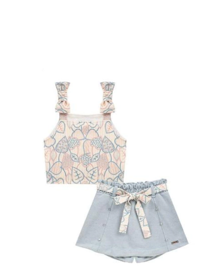 Descrição: Modelo em 2 peças- Linda blusa cropped em tecido delicado e short saia em moletinho com linho.