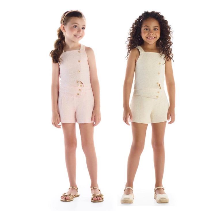 Descrição: Modelo em 2 peças- Linda blusa e short em tecido jacquard com linho.