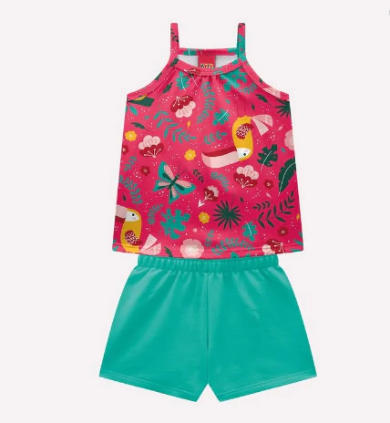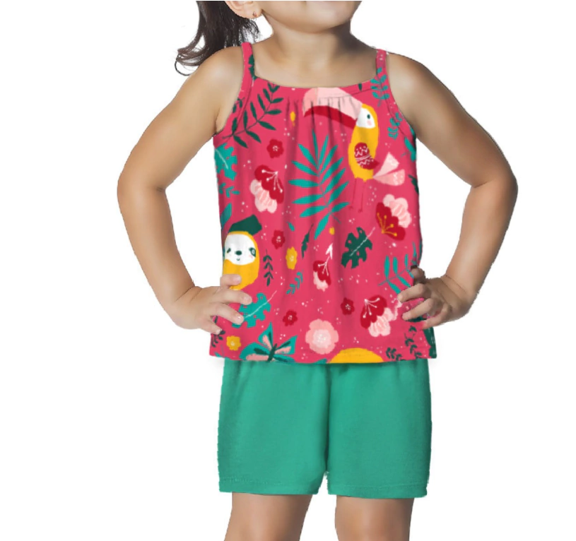 Descrição: Modelo em 2 peças - Linda blusa de alcinha estampada e short liso em malha .