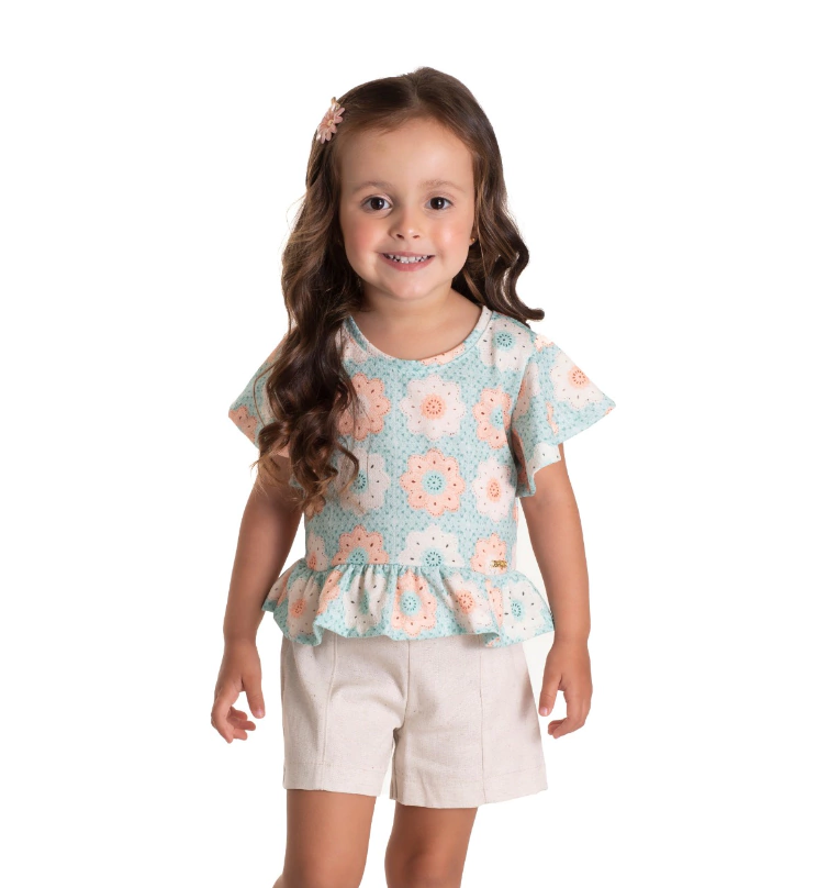 Descrição: modelo em 2 peças: linda blusa cropped favinho e short linho stretch.