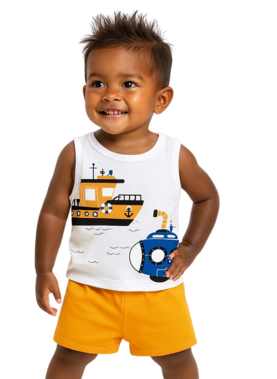 Descrição : Modelo em 2 peças - Linda camiseta regata em meia malha e bermuda em moletinho.