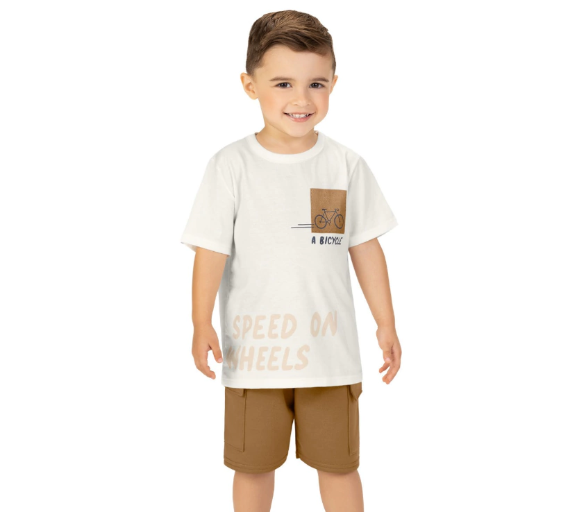Descrição : Modelo em 2 peças - Linda camiseta em meia malha e bermuda em moletinho com bolsos laterais.