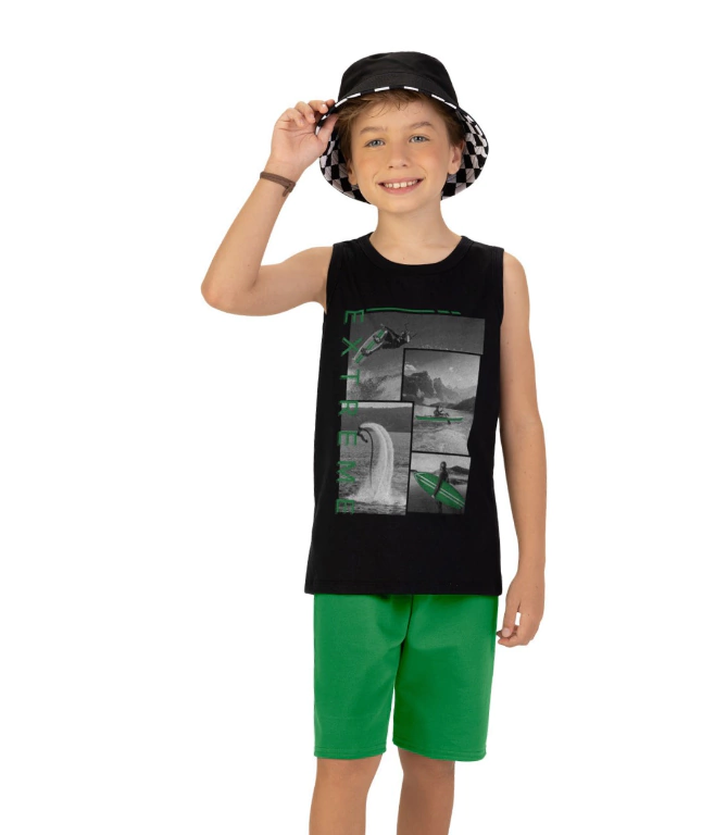 Descrição : Modelo em 2 peças - Linda camiseta regata em meia malha e bermuda em moletinho.