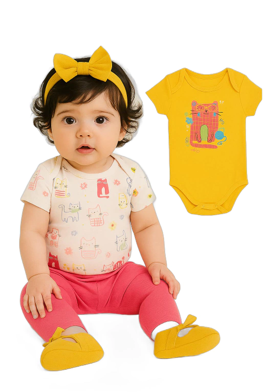Descrição: modelo em 3 peças - 2 bodies manga curta e calça sem pé em cotton .