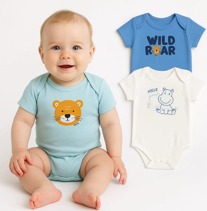 Descrição: modelo em 3 peças - kit com 3 Bodies manga curta com cores e estampas sortidas em malha suedine.