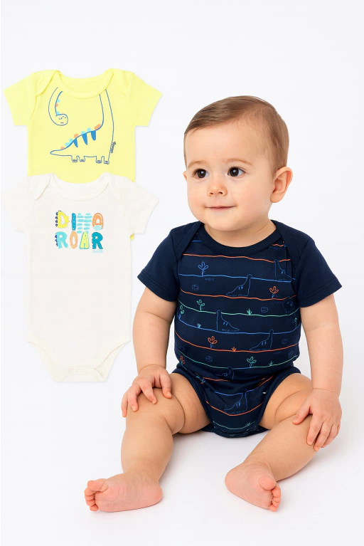 Descrição: modelo em 3 peças - kit com 3 Bodies manga curta com cores e estampas sortidas em malha suedine.