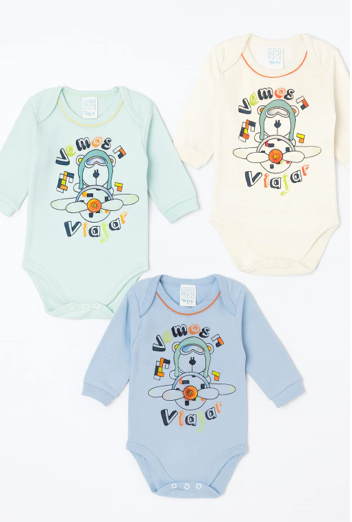 Descrição: modelo em 3 peças - kit com 3 Bodies manga longa com cores sortidas em malha suedine.
