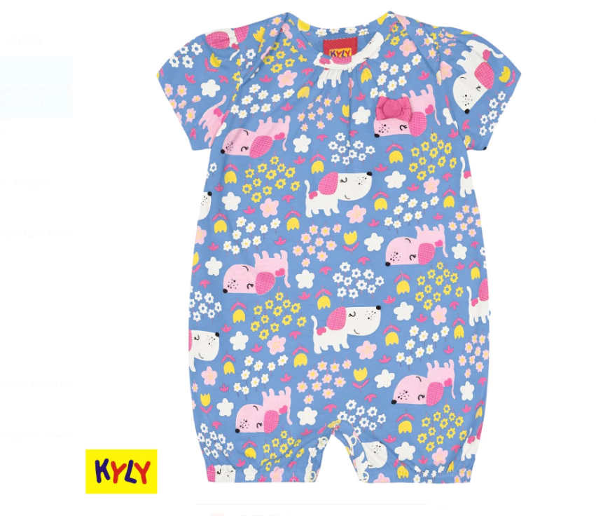 Descricão :Macaquinho Bebê Menina Kyly em meia malha . A estampa rotativa de cachorrinho passeando pelo jardim traz um toque clássico e adorável para o dia a dia dos bebês.