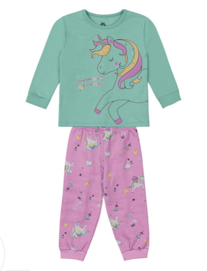 Lindo pijama longo em meia moletom flanelado com estampa que brilha no escuro.