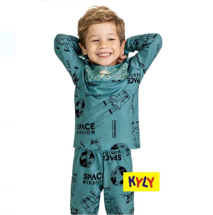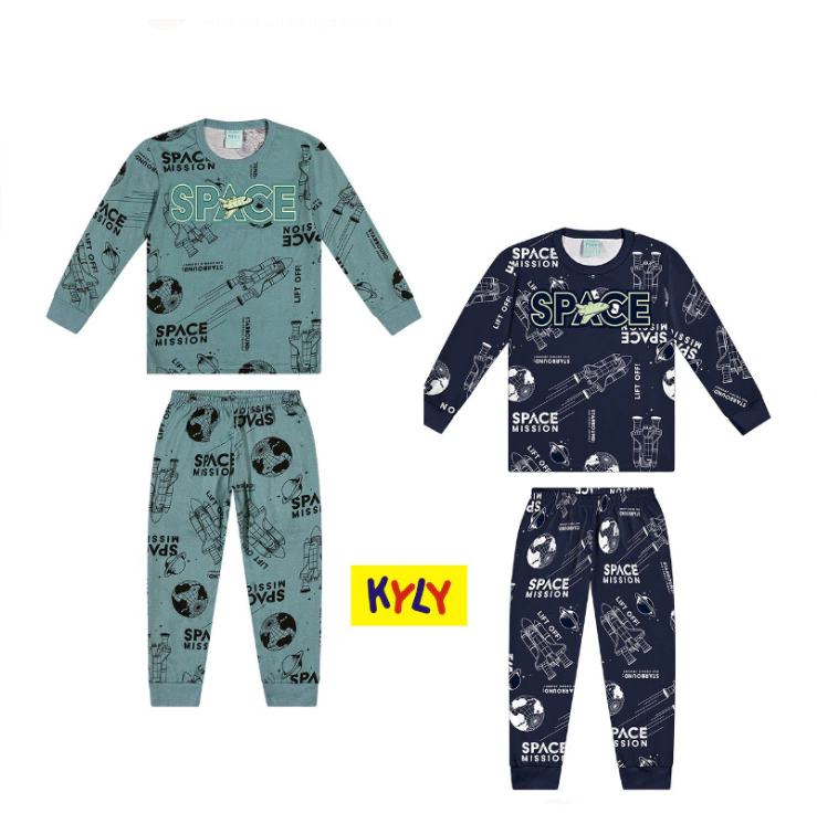 Descrição: Modelo em 2 peças - Lindo pijama manga longa em meia malha com estampa que brilha no escuro.