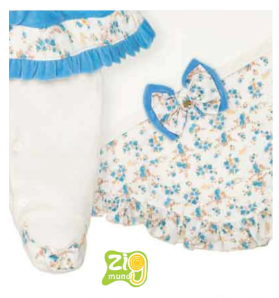 Descricao Modelo em 2 pecas - Macacao e manta em plush liso e detalhe tecido floral com laco feito a mao e gola de piquet.