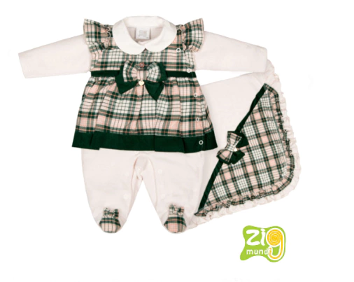 Descricao Modelo em 2 pecas - Lindo macacao longo em plush liso e flanela xadrez com detalhe feito a mao e veludo na barra combinando com manta forrada.