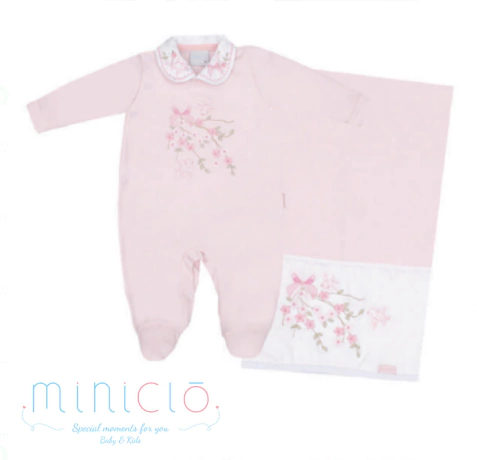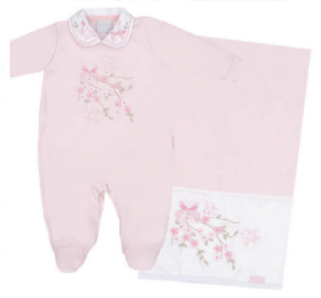Saida Maternidade Minicló.Descrição: modelo em 2 peças - lindo macacão em malha suedine com bordado combinando com a manta em malha suedine .Composição: 100% algodãoTABELA ORIENTATIVA DE TAMANHOSRN - 0 a 2 mesesP - 2 a 4 meses
