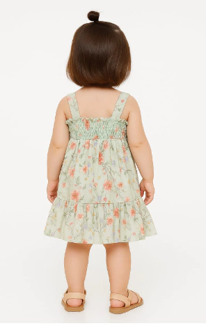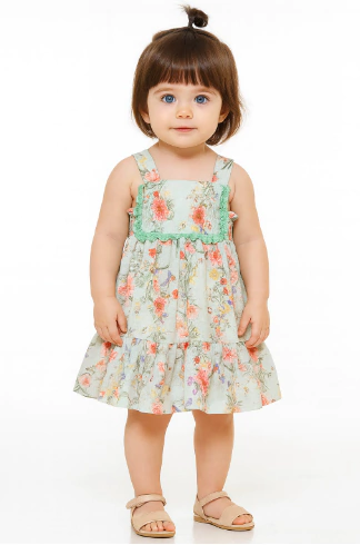 Lindo vestido floral de alça, com detalhe na parte da frente de crochê e elástico na parte de trás.