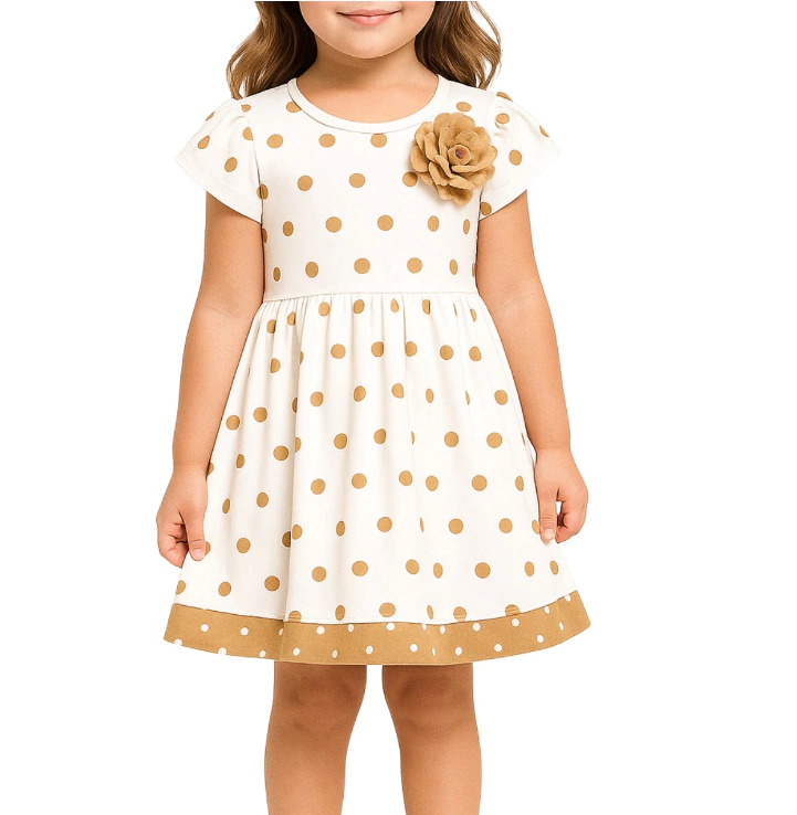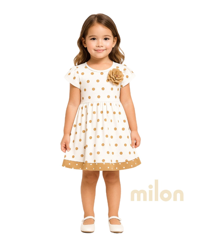 Descrição : Lindo vestido poá em cotton e aplicação em flor.