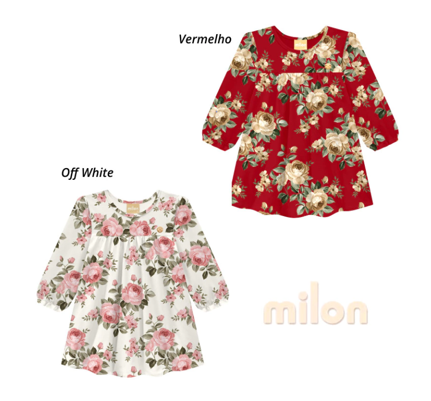 Vestido Milon Descrição: Modelo em 1 peça - Lindo vestido manga longa estampado em cotton. Composição: 95% algodão 5% elastano. TABELA ORIENTATIVA DE TAMANHOS: