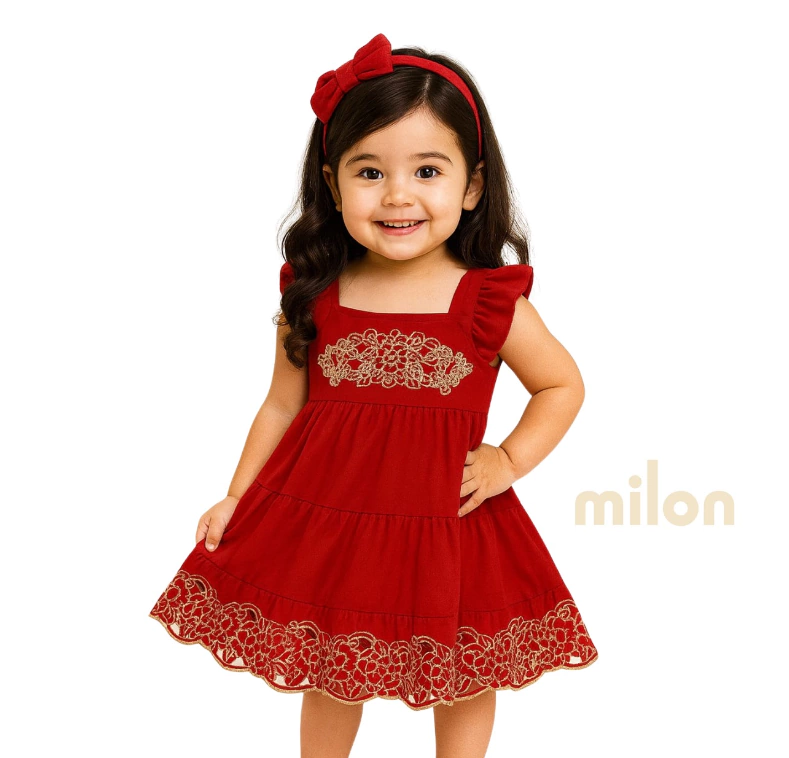 Descrição : Lindo Vestido com relevo floral delicados e mangas com acabamento bordado , um modelo leve e rodado e super confortável .