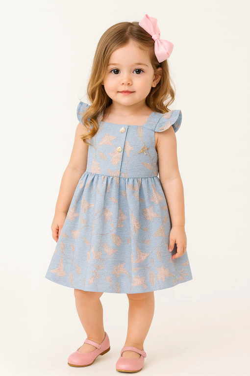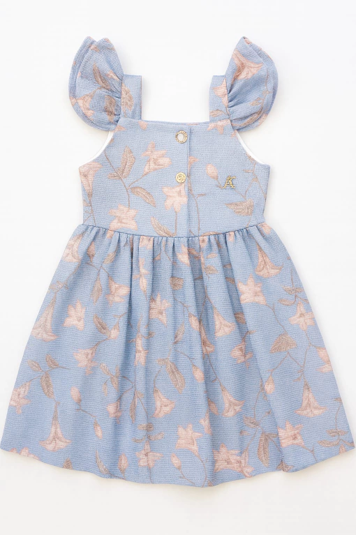 Descrição: Modelo em 1 peça- Lindo vestido floral com tons suaves ,mangas em babados e aplicação de botões e perolas